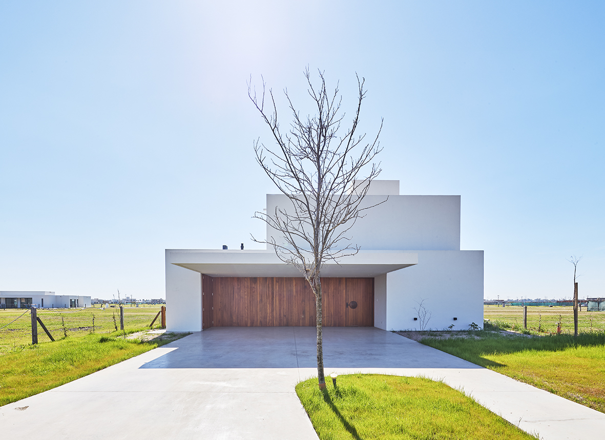 El énfasis proyectual estuvo puesto en la resolución de una cochera sin columnas para que resulte como un gran techo en voladizo.